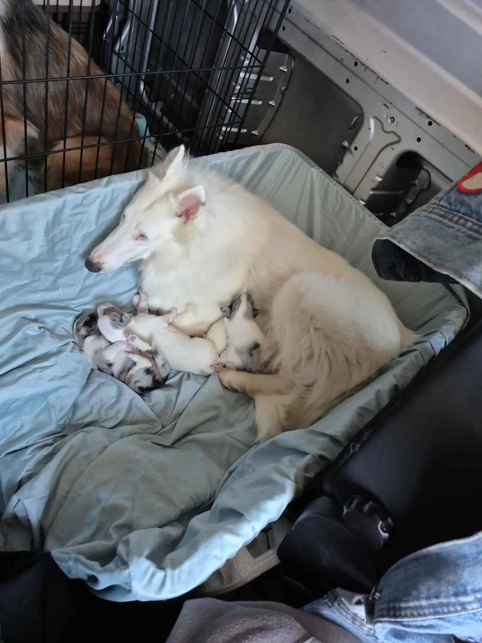 As the sun was rising this morning, Alyssa, the Elko, Nevada Shelter Manager, gently loaded Stardust, her five tiny babies, and three other adult female collies into the vehicle to begin their journey to California.