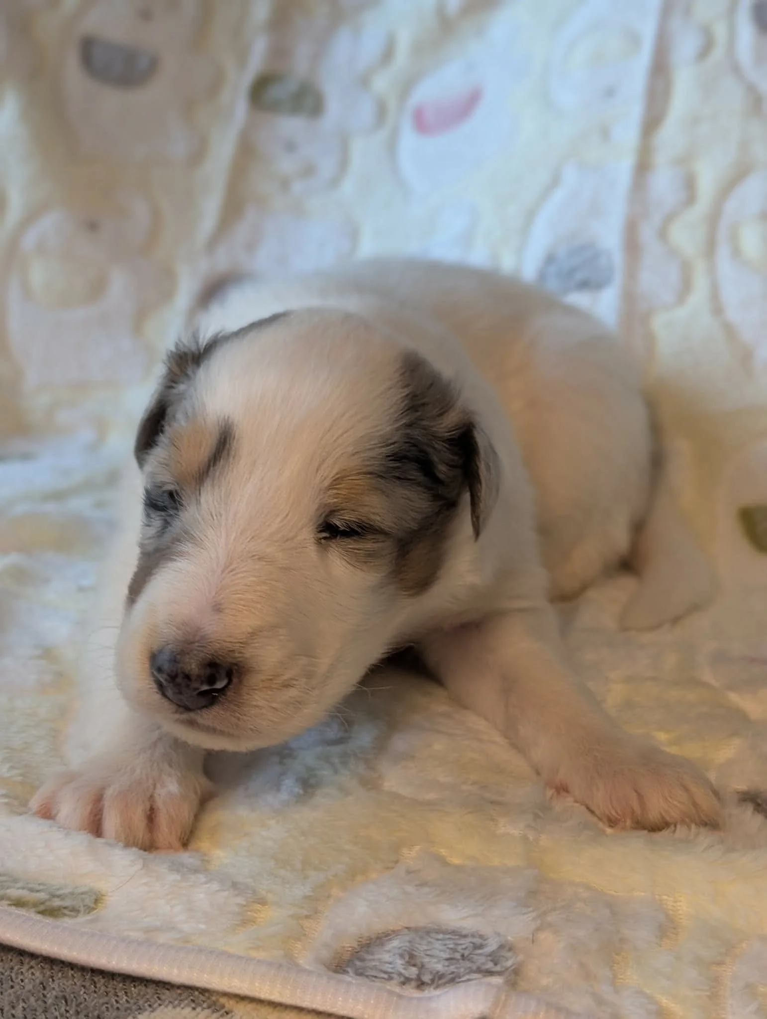 When Andrea Moss, our 4th top bidder in the “Name That Puppy” fundraiser, saw this adorable merle-headed white pup, she was instantly reminded of her beloved collie, Peter. Rescued from the Yolo County hoarding case in 2005, her “Peter Rabbit” got his nickname from his signature move—springing straight up into the air whenever volunteers came near!